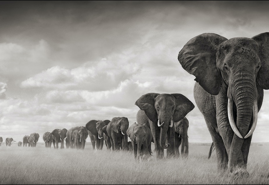 Elephant parades are comprised of female members. They have a matriarch but she is not self-appointed, voted in or haphazardly chosen. The parade members push her into leadership because she is respected for her wisdom and knowledge. She has proven overtime that she can be trusted to make wise decisions. Like any strong leader, she is always accepting of suggestions from parade members, even from the youngest elephants. Each member has a unique personality that contributes to the protection and success of the parade. They cooperate and work together for survival. This includes anything from providing defense to protect the group from danger, to sharing responsibility in caring for any or all young calves of the group. Elephants grieve when a parade member dies and have the capacity for empathy. They also remember and recognize one another upon being reunited, after living apart for long periods of time.
